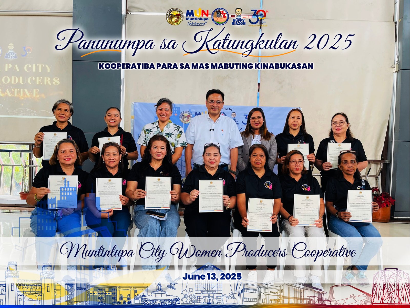 On June 13, 2025, the first batch of cooperative officers in Muntinlupa formally took their Oath of Office at the Main Building of Muntinlupa City Hall. The ceremony was led by Mayor Ruffy Biazon, who personally administered the oath to the newly elected officers.